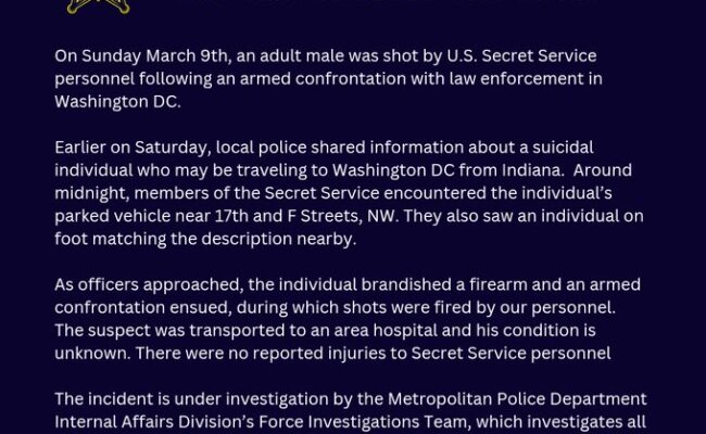 Según reportes oficiales, la policía local había recibido información sobre un individuo que supuestamente viajaba desde Indiana hacia la capital, con intenciones suicidas. Poco después, agentes del Servicio Secreto localizaron su vehículo y avistaron a un hombre caminando que coincidía con la descripción del sospechoso.