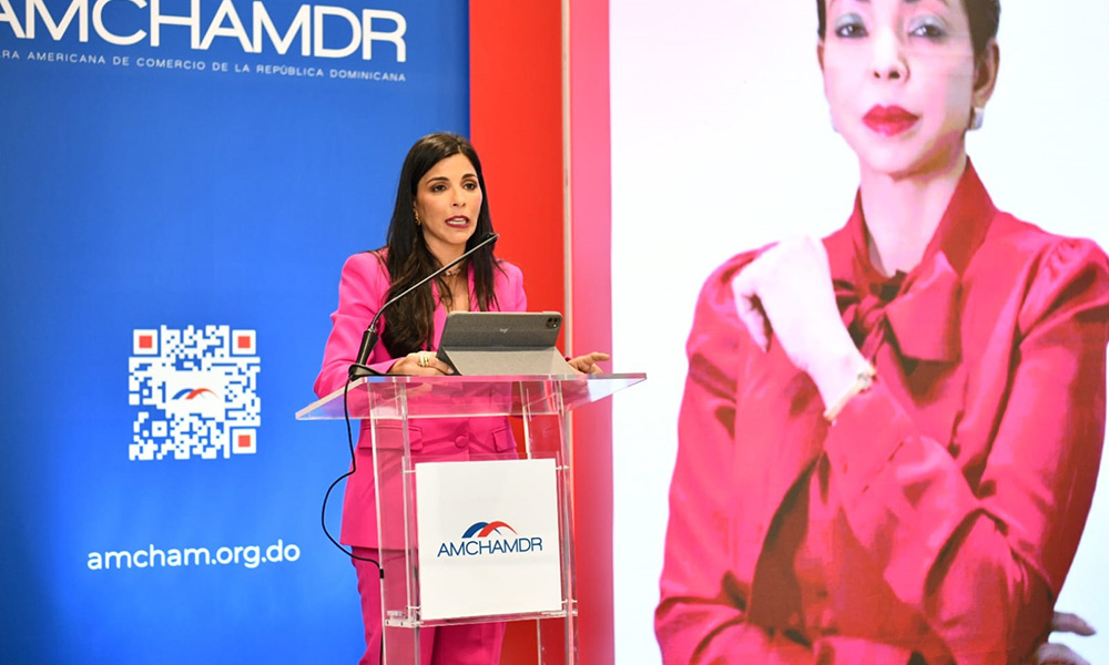 Francesca Rainieri, presidenta de Amchamdr, resaltó la relevancia de esta conversación en un momento de profundas transformaciones tecnológicas y económicas para la región del Cibao y el país.